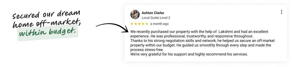 I had an excellent experience working with Hema. She guided and educated me through the entire process and helped me secure a very strong property. Within a few months, the property has already increased by around $70K in value. Very knowledgeable, supportive, and highly recommended.