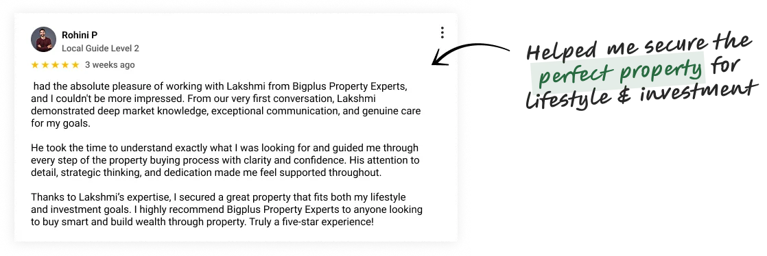 Hi, I’m Lakshmi Sundarrajan, founder of Bigplus Property Experts.